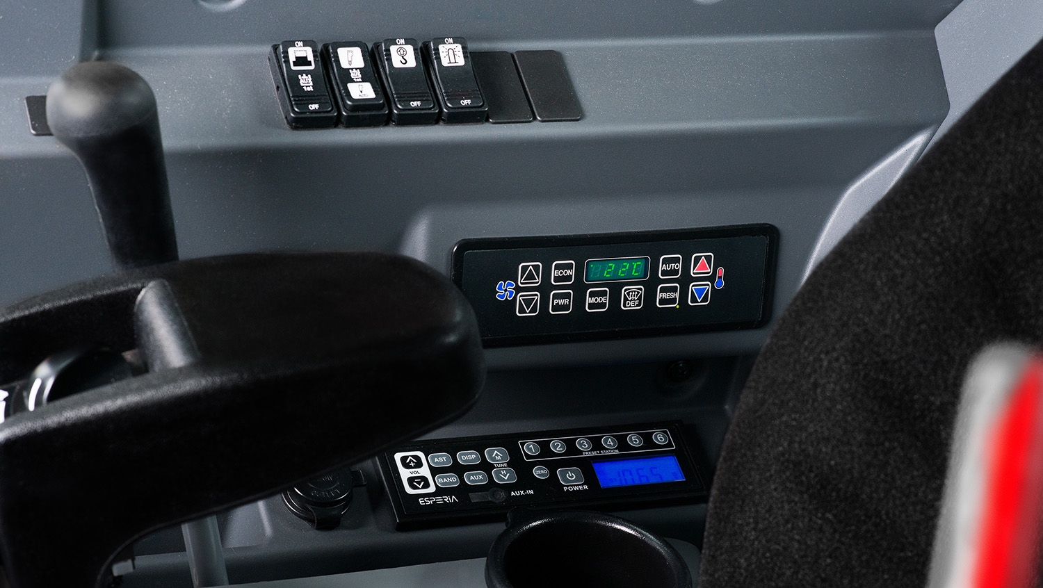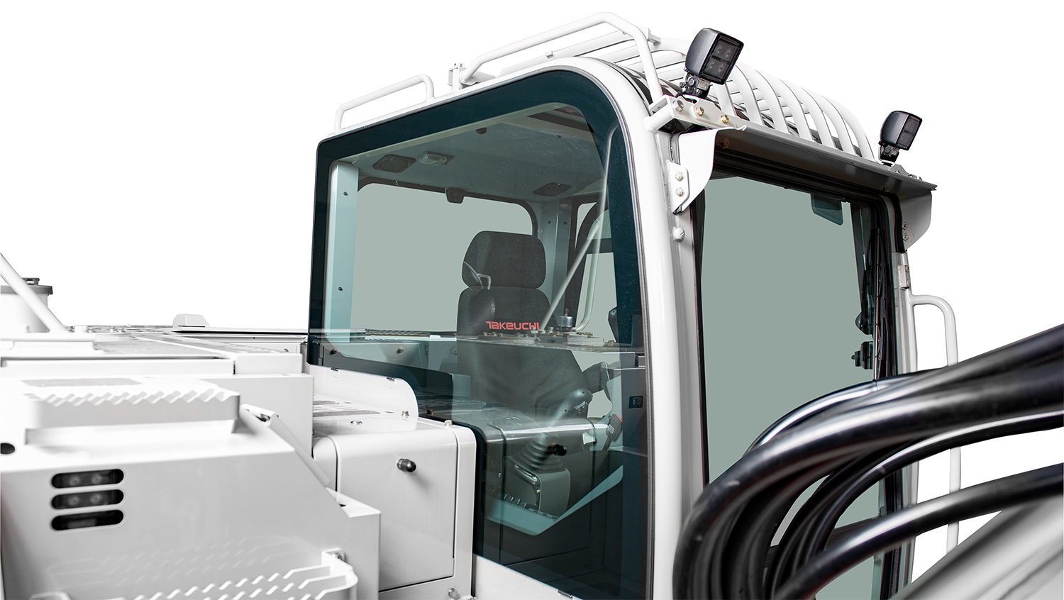 Faptul că brațul pivotant și lama de buldozer—două caracteristici care îi măresc în mod considerabil versatilitatea—apar în dotarea standard, face din acest model un unicat al clasei din care face parte. Cabina este dotată cu scaun cu suspensie, instalație de control automat al climei și un monitor color cu diagonala mare care permite monitorizarea performanțelor mașinii și vizualizarea imaginilor oferite de camerele video ce supravegheaza atât spatele cat si laterala excavatorului.