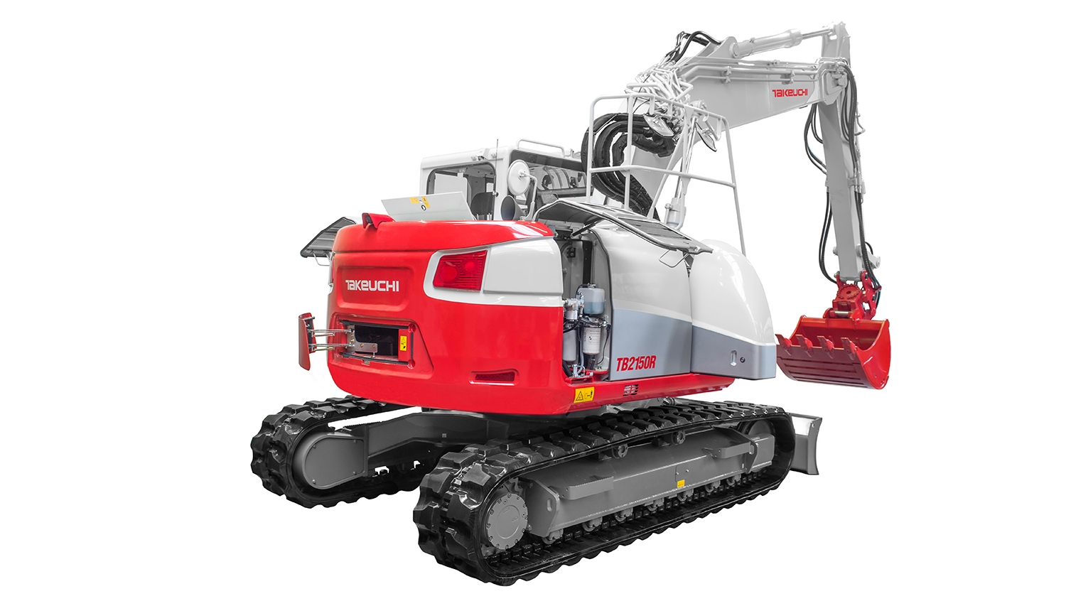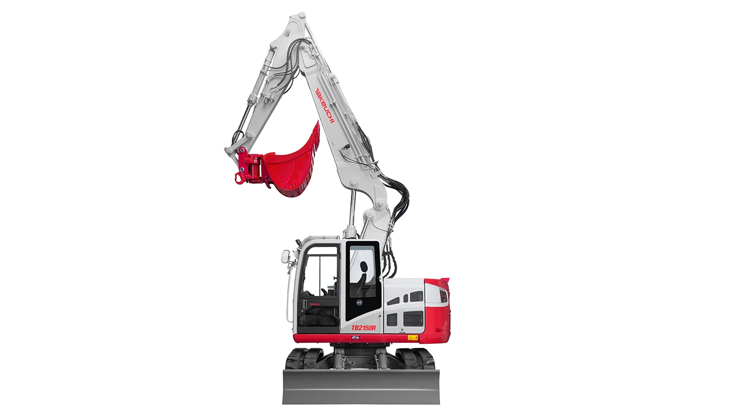 Acesta este cel mai mare excavator senilat din gama Takeuchi. Dispune de un braț fix pentru o stabilitate mai mare și îi permite operatorului să transporte sarcini mai grele. Excavatorul TB2150R este echipat în mod standard cu un braț simplu (monoboom) care îi permite să obțină cea mai bună adâncime de săpare din clasa excavatoarelor de 15 tone.